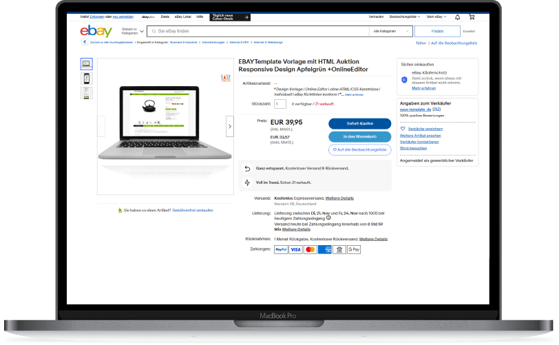 eBay is the classic example of an auction platform and one of the most renowned players in the eCommerce sector. The provider operates globally and is especially popular in Germany. eBay offers the possibility to auction items in hundreds of different categories. In addition to numerous payment methods such as PayPal with buyer protection, eBay also offers advanced functionality in managing the account, customizing listings, and in search. Sellers can also set up their own store pages on eBay.